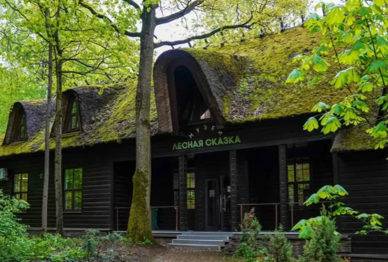 Седьмая точка маршрута, финиш: Экоцентр «Лесная сказка». Ну вот мы и пришли в самое сердце леса – экоцентр «Лесная сказка. Этот домик с моховой крышей построили сами лешие. Дом напоминает жилище сказочных героев – деревянные стены, витражи с животными. Здесь живут знания о природе, и мы можем с вами посмотреть мультфильмы об экосистеме леса, интерактивную экспозицию леса и животных, которые там обитают, узнать о пользе растений и что можно из них приготовить. Я — фея, проведу сегодня мастер-класс по приготовлению копорского иван-чая, который готовили в старину.