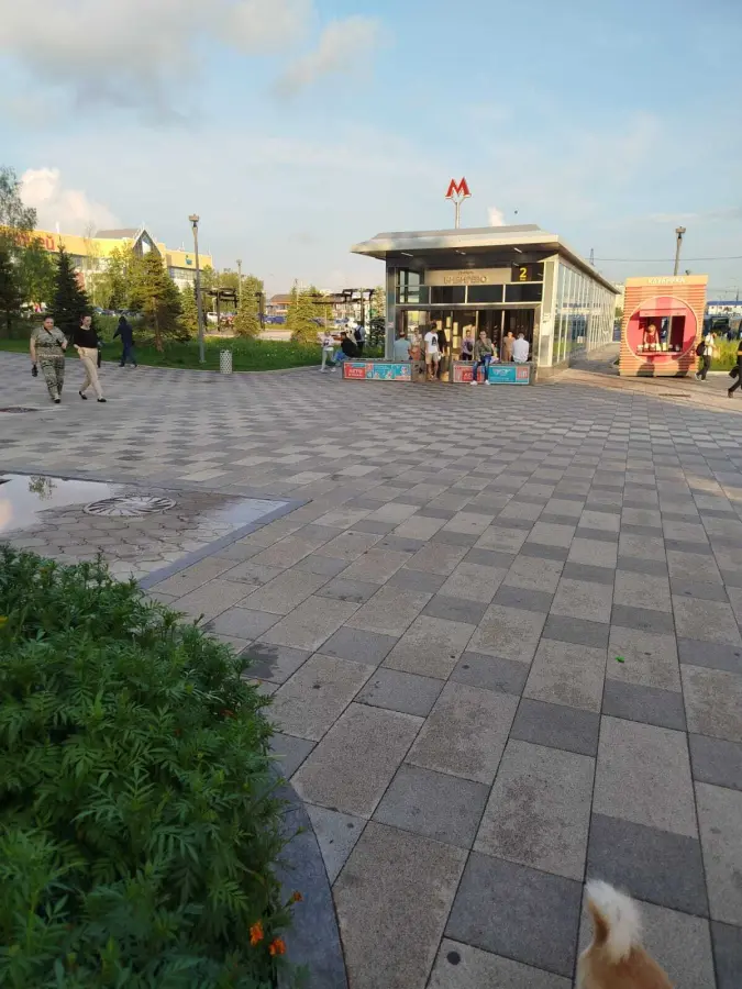 Когда мы выходим из метро, сразу вокруг много людей. Но не волнуйтесь, мы быстро пройдёмся по улице и увидим замечательные места.