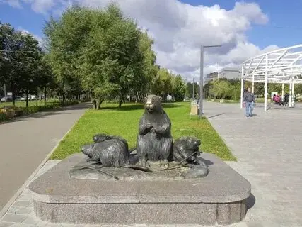 Идём дальше мы упираемся в скульптуру «Семейство бобров». Композиция изображает бобриху с тремя детёнышами. Бобры — символ района Бибирево, изображены на гербе. Открытие состоялось в сентябре 2019 года, в День города. Авторы — художники Ваге и Микаэль Согояны.