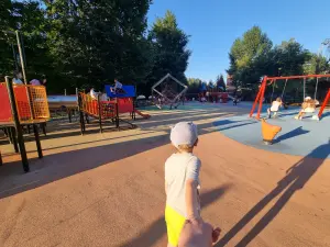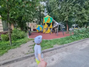 - А еще в Таганском парке огромная детская площадка с кучей аттракционов. Тут обычно гуляет много ребят разного возраста, но всем всегда есть где поиграть. И часто я встречаю здесь своих друзей по садику и театральной студии.