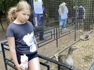 Здесь можно увидеть, например, китайского гуся – одного из двух видов одомашненных гусей. Европейцы одомашнили серого гуся, а китайцы – гуся-сухоноса. Его можно опознать по крупной шишке над клювом и тёмной полосе по всей спине. Разводить гусей выгодно, потому что для питания им требуется больше травы, чем зерна.