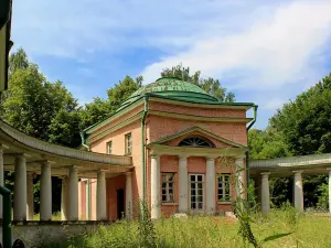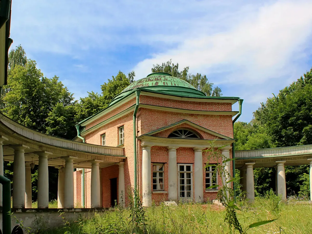 Начнём экскурсию со здания Птичьего двора в парке «Кузьминки». Когда-то владельцы усадьбы Кузьминки князья Голицыны держали здесь большой птичник с такими экзотическими птицами, как павлины, индюки, голуби редких пород. Всех их перестреляли и съели наполеоновские солдаты, когда заняли усадьбу в 1812 году, и позднее владельцы Кузьминок не разводили птиц. Сейчас здание птичника реставрируют, а птичек тут нет.
