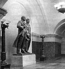 5. Скульптурная композиция. Изначально при открытии станции были установлены памятники В. И. Ленину и И. В. Сталину. Однако, позже, в 1956 году после XX съезда партии памятник Сталину был демонтирован, статую Ленина переставили в середину. При этом и он там простоял чуть менее 20-ти лет.