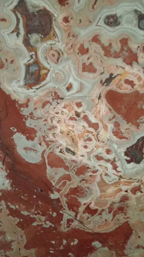 3. Пилоны облицованы великолепным красным мрамором с белыми прожилками, среди которых встречаются окаменелости. Возраст мрамора около 650 миллионов лет. Верхняя часть стен обложена белым мрамором.