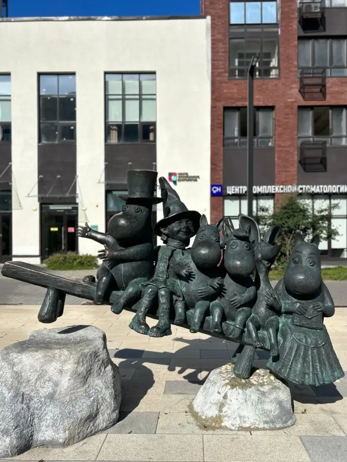 Начнем нашу экскурсию у памятника известной финской писательнице, в честь которой и названа площадь в новом жилом районе «Скандинавия» в Новой Москве. Это первый в Европе памятник писательнице! Также на этой площади мы встретимся с муми-троллями и их друзьями — самыми известными персонажами сказок Туве Янссон.