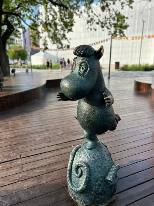 Надеюсь, после нашей экскурсии, вы захотели почитать или перечитать добрые и волшебные сказки про Муми-тролля? Я вас обрадую, вы уже начали их читать! Ведь рядом с каждой скульптурой на этой площади написана вдохновляющая цитата из сказок Туве Янссон!