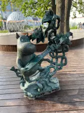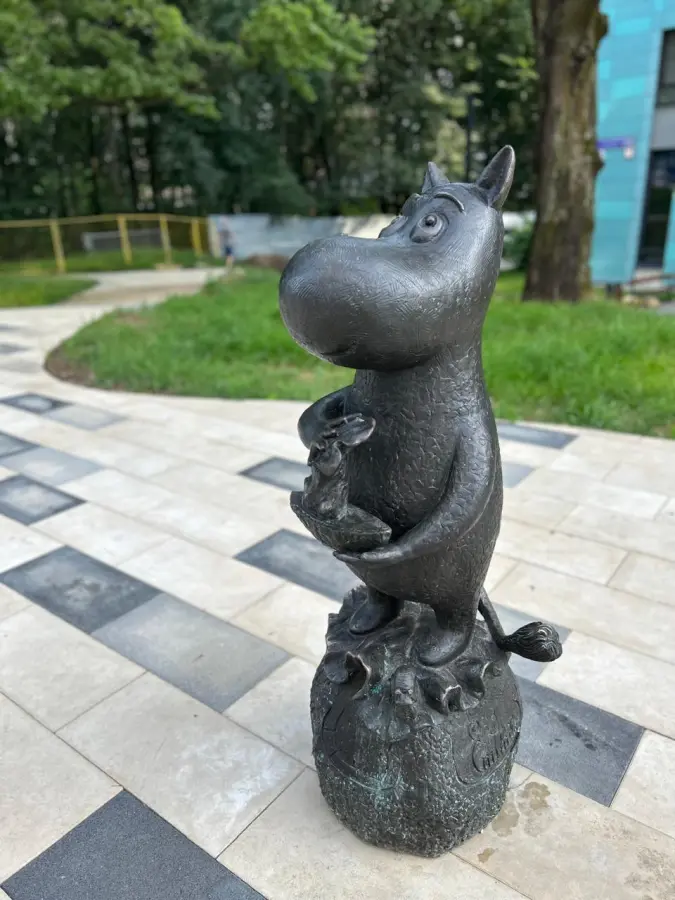 Последняя скульптура в нашей экскурсии — парная. Местные шутят, что наш Муми-тролль борется с ядовитым борщевиком, надеемся, что победа будет за нашим героем.