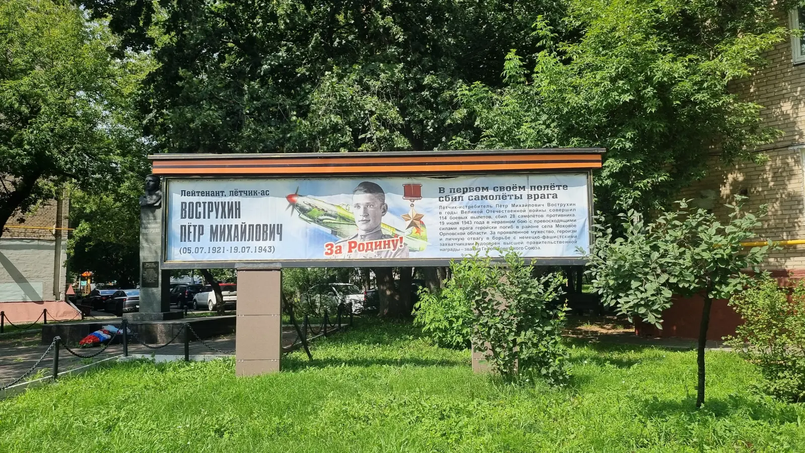 Улица Хлобыстова переходит в улицу Вострухина, названную в честь прославленного героя-лётчика Петра Михайловича Вострухина. По ней мы отправляемся к нашей конечной точке маршрута – к бронзовому бюсту Героя Советского Союза Петра Михайловича Вострухина, который находится на перекрестке улицы Вострухина и Рязанского проспекта.