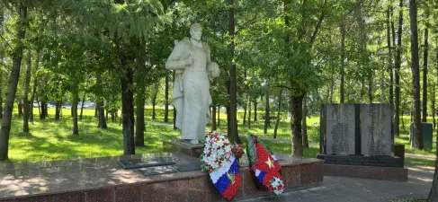 Далее мы пойдём в сторону Малого Солнцевского пруда, но сначала, пройдя мимо входа на станцию «Солнцево» Московского метрополитена, зайдём к мемориалу воинам-освободителям «В памяти народной подвиг твой бессмертный». Рядом с белокаменным солдатом на обелиске в виде раскрытой книги написаны имена героев, отдавших жизнь за Родину. Надпись на обелиске гласит: «Вечная память жителям поселка Солнцево». К осени 1941 года территория современного Солнцева оказалась во фронтовой полосе, где проходил последний рубеж обороны столицы. Сейчас в разных уголках района можно увидеть множество памятников событиям Великой Отечественной войны. Один такой – Памятник жителям деревни Терешково, погибшим в 1941–1945 годах, – находится около моей школы, на пересечении Боровского шоссе и улицы Главмосстроя. В День Победы школьники возлагают к памятникам и монументам цветы. Жители Солнцево свято хранят и чтят память о своих героях.