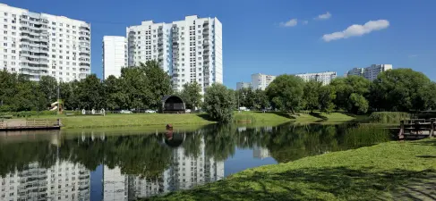 Следующая остановка нашей прогулки – Малый Солнцевский пруд. У пруда обустроены смотровые площадки со скамейками и находится сцена для проведения массовых мероприятий. Вокруг пруда расположен сквер, где также много красивых скамеек, детская и спортивная площадки, а также качели, которые светятся различными цветами в темноте.