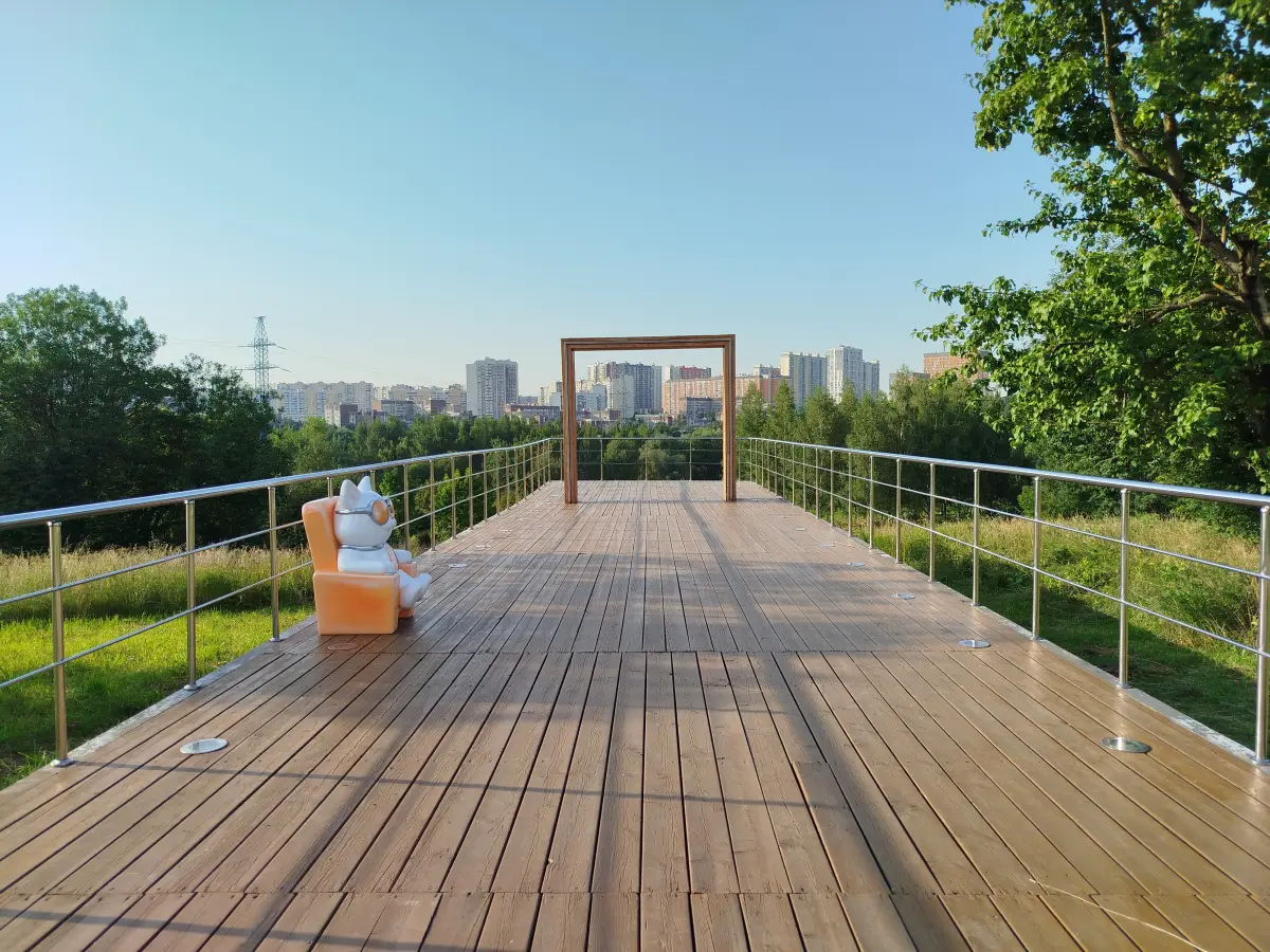 С неё открываются замечательные виды на парк, многоэтажки и храм. На их фоне можно сделать фото в деревянной рамке, установленной тут же (фото 6).