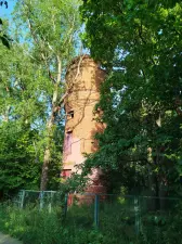 Неподалёку находится водонапорная башня из красного кирпича, построенная в 1957 году (фото 7). По местным легендам, она уходит на 5 этажей вглубь земли. И если хорошо покопаться в интернете, то можно найти фотографии сталкеров, спускавшихся вниз.