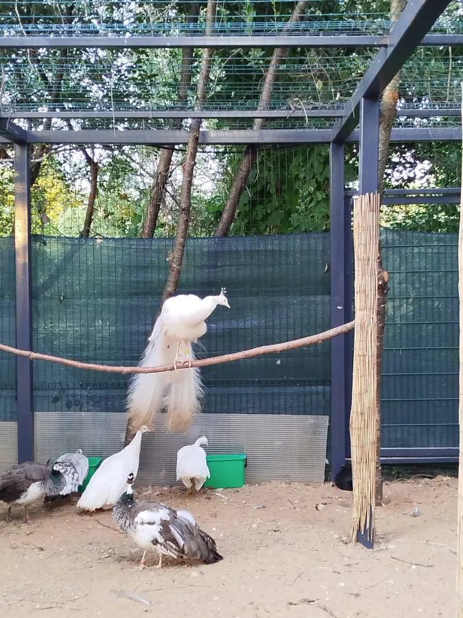 А ещё на поляне между деревьями, недалеко от усадьбы Деда Мороза, ведётся постройка птичника. И хотя его ещё не открыли, но уже в вольерах можно увидеть страусов, павлинов, фазанов и кур (фото 10). Я с нетерпением жду его открытия!