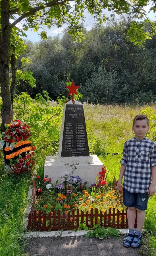 Памятник — обелиск славы с красной звездой, на нём надпись «Жителям села Узкое, не вернувшимся с войны 1941 — 1945». Памятник покрасили, посадили цветы. Около него всегда много цветов. Рядом есть храм белого цвета. Очень красивый и сам храм, и его территория. Напротив вход в санаторий «Узкое» — в нём много красивых деревьев и прудов.