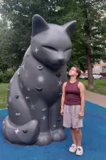 Здесь же расположена необычная детская площадка – Звёздный кот. Во-первых, она очень красивая, а во-вторых это мини-скалодром. Эти штучки, за которые цепляются, называются «зацепами» и делаются не просто так, а имеют свои стандарты. Короткие сложные трассы, на которые можно взбираться без страховки, называются «боулдерингами». Чтобы было безопасно использовать их без страховки, внизу укладывают специальные маты «крешпады». Знаете ли вы, что скалолазание совсем недавно стало олимпийским видом спорта? Возможно, такая детская площадка вдохновит ребят на олимпийские рекорды.