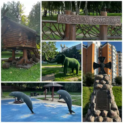 Перед нами ворота – вход в парк «Лесная сказка» (1). Его построили в 2017 году по результатам голосования в проекте «Активный гражданин». Жители района выбрали этот сквер во дворе дома и варианты его оформления.