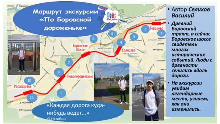 Цель экскурсионного маршрута: изучение истории и достопримечательностей нашей Родины и Родного края, приобщение к подвигам Отечества и осознание исторических перемен на примере Боровского шоссе.
