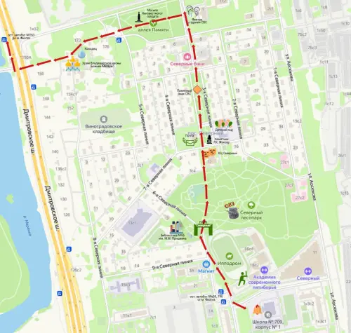 Пройдя через тихую зелень парка, мы попадём в самое сердце исторической части района. Нашему Северному уже больше 70 лет. Его построили в 1952 году как посёлок для сотрудников Северной водопроводной станции (сейчас это Северная станция водоподготовки). Наша станция снабжает водой много районов Москвы, поэтому и посёлок для её работников построили очень уютный и, как говорится, со всеми удобствами. Пройдя по скверу на 3-й Северной линии, который у нас называют Северный Арбат, мы увидим не только красивые фонари, зелень, удобные скамейки и живописные перголы. Тут располагались все необходимые для жизни места: почта, детский сад, магазин, баня – они работают и до сих пор; на соседней линии были больница, аптека и роддом! Тут же и библиотека, и Дом культуры. И, конечно, жилые дома – уютные двухэтажные коттеджи на 4 квартиры.