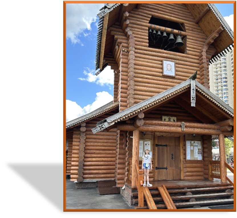 В этот храм я прихожу часто: он находится рядом с моим домом. Здесь собираются целые семьи. Родители сразу идут на службу, малыши – на детскую площадку на территории храма. Как и сама церковь, всё сделано из бруса. При храме работает Воскресная школа, на территории есть своя пекарня. Зайдите сюда! Какую выпечку можно здесь отведать! После длительного путешествия мы с вами немного посидим на улице за деревянным столом и попьём чай с ароматными булочками.