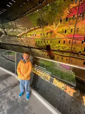 Теперь мы отправимся по дорожкам Ботанического сада, как будто через лес, на ВДНХ. И наша следующая остановка – Грузинский сквер. Этот сквер открыли в 1967 году. Его сделали похожим на настоящий грузинский сад. Много материалов для сквера, например, камни и растения, привезли прямо из Грузии. В сквере есть интересные места: игровая площадка для детей с ручьем, по которому можно пускать кораблики. Место для отдыха с удобными лежаками и большим деревянным навесом. Смотровая площадка, откуда хорошо виден фонтан «Золотой Колос». В 2016–2018 годах прошла реконструкция территории Грузинского сквера, некоторые исторические элементы были сохранены и отреставрированы. Например, скульптура горного козла, установленная в сквере около 70 лет назад.