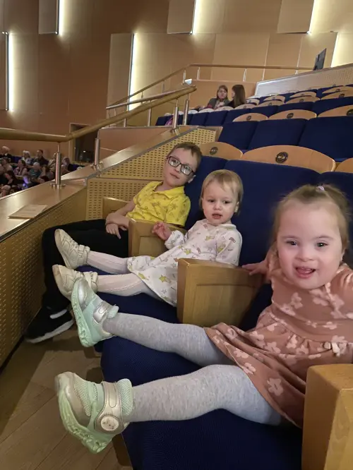 На первый взгляд мы самая обычная многодетная семья. Есть мама и папа, я — Даня, 7 лет, и мои сестрички — Ксюша, 3 года, и Полина, 2 года. Мы очень веселые и любим везде ходить вместе. У нас есть любимый театр — «Театр на юго-западе». Пересмотрели все детские спектакли и почти все взрослые. Обожаем спектакли театра Сац в КЦ Вдохновение. Наша Ксюшка — особенная девочка, у неё синдром Дауна. И мы состоим в районном обществе инвалидов и участвуем в конкурсах и мероприятиях общества. Вспоминаем о подвигах наших бабушек и дедушек в Музее обороны Москвы, на экскурсиях в Бородино и Музей Панфиловцев, узнаем нашу историю и какие отважные и смелые наши соотечественники. Я очень активный, даже гиперактивный ребёнок, очень люблю спорт: плаваю в бассейне в Олимпийской деревне, играю в футбол, катаюсь зимой на коньках, а летом на велосипеде. И я люблю рисовать и участвовать в конкурсе чтецов. Недавно мои картины были на выставке в библиотеке им. Гагарина. Полина и Ксюша очень любят театры и музыку. Ксюша в свои 3 года уже участвует в соревнованиях по спортивной гимнастике и даже получила медаль. Мы очень гордимся ее успехами, ведь ей все даётся сложнее, чем мне. На фото мы все вместе в Филармонии на концерте классической домровой музыки.
