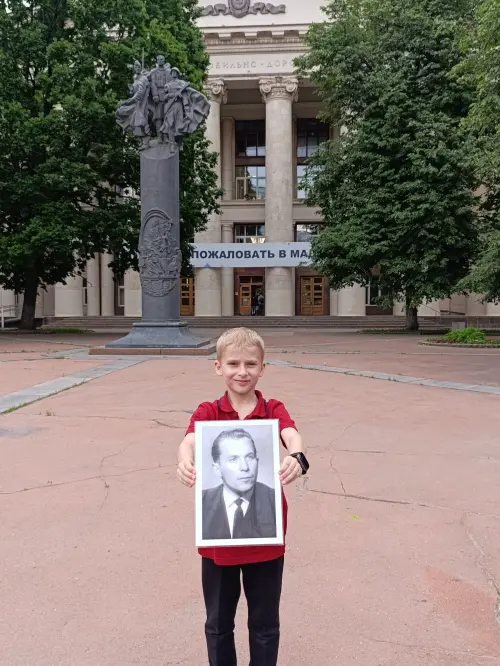 Мой дедушка, Фомин Владимир Николаевич, родился в 1937 году на Дальнем Востоке, в городе Благовещенске, в простой рабочей семье. Его папа, Николай Андреевич, погиб на фронте в Великую Отечественную войну. Пропал без вести в Воронежской области в октябре 1942 года. Тогда практически вся дальневосточная дивизия полегла в кровопролитных боях под Воронежем. Моему дедушке было в то время 5 лет, и его мама, Евдокия Михайловна, осталась одна с двумя сыновьями. Мама была неграмотной, и, когда надо было написать письмо родственникам, просила это сделать моего дедушку или его старшего брата. Она работала на спичечной фабрике «Искра», чтобы хоть как-то прокормить семью. Голодное время наложило отпечаток на всю оставшуюся жизнь, Владимир Николаевич всегда относился бережно к продуктам питания, был скромным и не позволял себе ничего лишнего. Он рос трудолюбивым и любознательным и очень стремился к знаниям.