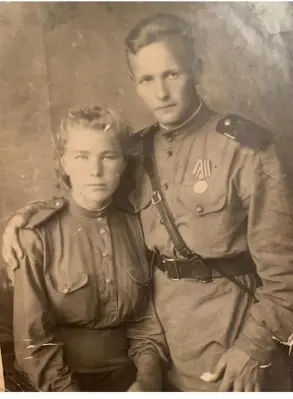 В 1944 году, на войне, дедуля знакомится с Марией Тихоновной. А 31 августа 1944 года вступает с ней с законный брак. Война продолжается, а вместе с ней и жизнь. Люди верили в ПОБЕДУ и шли к ней. С войны прабабушка была демобилизована в декрет.