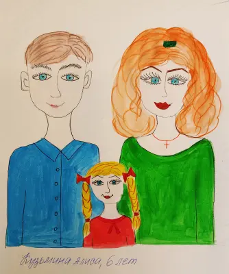 Люблю свою семью. Мама учит рисовать, готовить, вышивать и есть фрукты и овощи. А ещё мама просит мыть за собой посуду, но я не люблю это делать. Мне нравится по дому ходить в папиной военной форме, а иногда в маминых туфлях на каблуках. Мне нравится есть варенье из банки, лепить из пластилина, смотреть на закат, рисовать пальцами по бумаге, надувать мыльные пузыри.