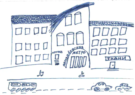 Мы с мамой приехали на метро «Автозаводская» в оптику, чтобы подобрать очки для брата. Лил дождь, было холодно, серо и бесцветно, поэтому рисунок без цвета.