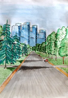 Формат А3, Техника исполнения - Акварель. Я часто гуляю в этом парке. Дышу воздухом и катаюсь на самокате. Это прекрасно, что в районе Отрадное есть такой чудесный, зелёный, ухоженный сквер.