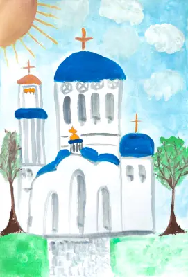 На рисунке я нарисовала церковь Собора Московских святых. Она большая и красивая, у нее есть высокие башни с крестами. Стены церкви белые, а крыши красные. Вокруг много зелени: деревья и цветы. Всё вокруг очень светлое и праздничное.