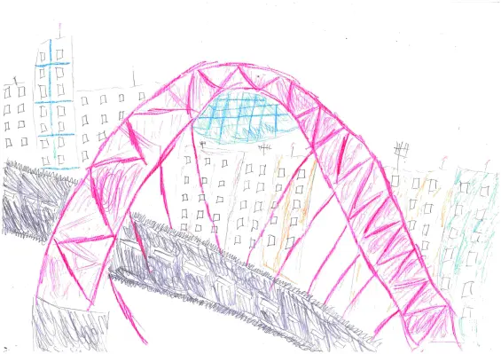 Мне нравится гулять по городу, особенно по Пресне. Этот мост я нарисовала, потому что пасмурная погода создает особую атмосферу. Мне нравится, как он смотрится с дождем и туманом.