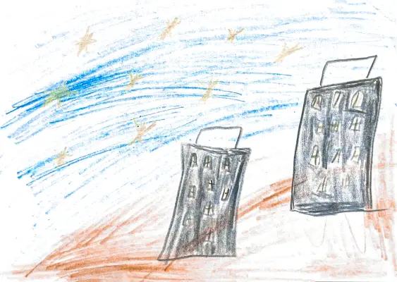 Когда большой праздник в Москве отмечают салютами, мы с мамой поднимаемся на самый верхний этаж и наблюдаем за красотой сверху. Ночью особенно красиво всё вокруг.