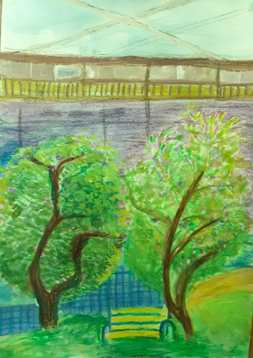 Моё первое занятие в изостудии «Радуга» было очень необычным: мы рисовали за мольбертами на улице! Это было здорово!