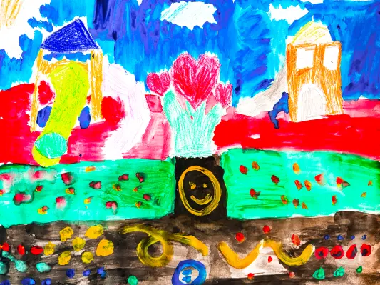 Я изобразила нашу красивую площадку, где я люблю проводить время и где можно сделать красивые фотографии.