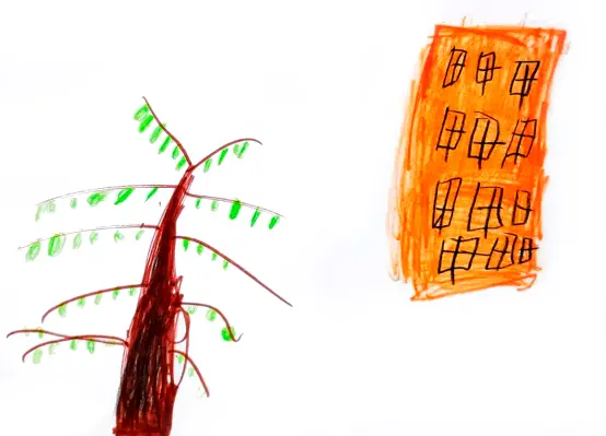 Леонид главным объектом своей работы избрал огромное дерево во дворе, и рядом дом. в котором он живёт. Тенистое дерево - настоящая достопримечательность двора, ему уже более 80 лет! Мальчик рассказал, что соседи в его доме очень дружные, и старшее поколение помнит, как это дерево было еще совсем не большим. Многие очень любят отдыхать в тени этого дерева.