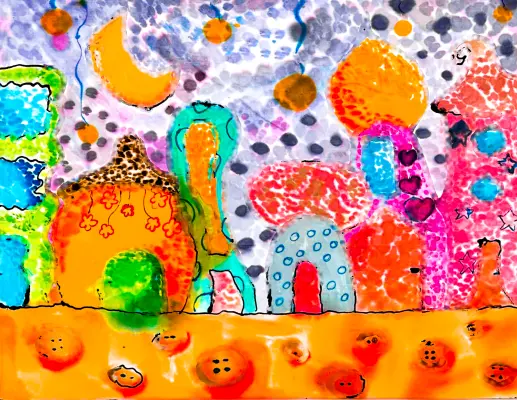 Современные детские площадки есть в каждом районе Москвы. Малыши могут играть в песочницах, кататься на качелях и прыгать на батутах, а ребята постарше — качаться на канатах и лазать в тоннелях. На рисунке изображён городок на одной из детских площадок столицы.