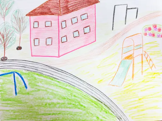 Помню, когда я первый раз в пошёл в школу, на улице было жарко и на перемене наш класс гулял по школьному двору. Здесь я познакомился с ребятами и нашёл много хороших друзей. Иногда мы приходили в школу пораньше, чтобы собраться и поиграть здесь. Мы играли в разные игры, но интереснее всего в догонялки и, конечно, в прятки. На школьном дворе проходят и торжественные линейки по случаю окончания школы или начала учебного года.