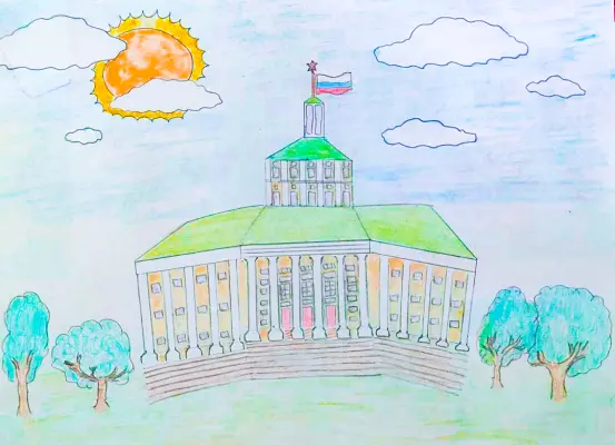 В нашем Мещанском районе расположен замечательный театр - Центральный академический театр Российской армии. У нас многодетная семья, и мы часто посещаем там различные мероприятия и представления. Я изобразил на рисунке этот замечательный театр.