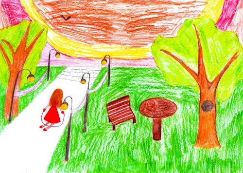 Меня зовут Алена, мне 11 лет. Я живу в районе Раменки. Мне очень нравится гулять в парке с друзьями и моей семьёй. В парке много деревьев, и там есть белочки.