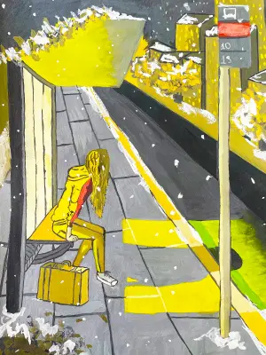 Краски мягко передают атмосферу, создавая ощущение сказки и волшебства. Рисунок наполнен светом и движением, приглашая зрителя в увлекательное путешествие по Подмосковью.