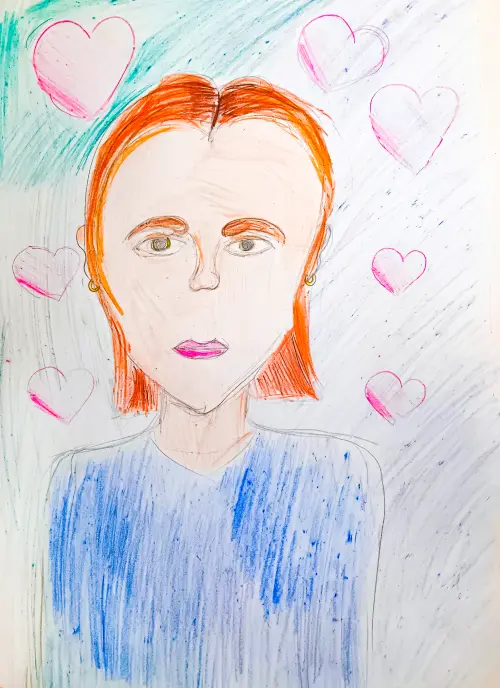 Добрый день. Меня зовут Лунёва Евгения. Я очень люблю район Останкино, а на этом рисунке изобразила свою любимую маму. Я учусь в школе и занимаюсь рисованием.