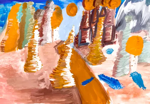 Добрый день. Меня зовут Синяева Яна. Я учусь в школе и занимаюсь рисованием. Ещё я занимаюсь в театральной студии. Я очень люблю парк «Останкино». Я часто гуляю со своей семьёй там. На рисунке он запечатлён в осеннюю пору.