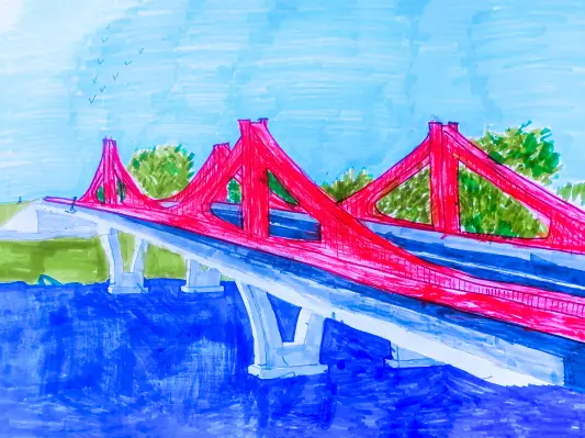 Я живу на Филевской пойме. Мне очень нравится гулять по нашему новому красному мосту через речку. Мост соединяет два берега. Теперь мы пешком добираемся до метро. Я люблю мосты! Они очень красивые!