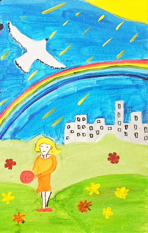 Марк живёт рядом с Миусским парком, где часто гуляет с родителями и младшей сестрой. Ребята весело играют, участвуют в различных спортивных мероприятиях. На своём рисункн Марк запечатлел свою сестру Киру, которая играет в бадминтон в погожий летний денёк.