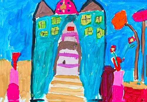 Аня Крестьянинова осенью идет в первый класс и нарисовала свою идеальную школу. Она живет в Хамовниках и часто ходит мимо здания, куда в сентябре отправится учиться.