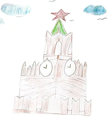На рисунке изображена главная достопримечательность столицы – Московский Кремль. Спасская башня – визитная карточка нашего любимого города. знакомая каждому.