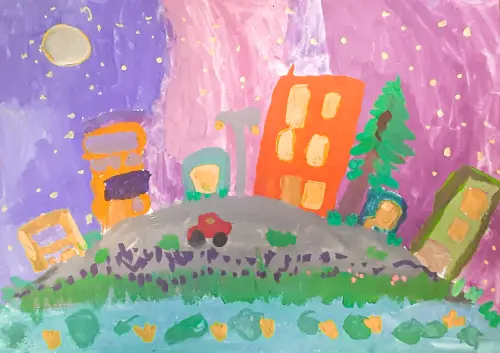 На рисунке Льва Панина, созданном в ИЗО-студии "Юный художник", предстаёт трогательный образ родного Ясенево. С любовью и вниманием к деталям художник изобразил знакомые улицы, уютные дома и оживлённые дороги. Ясенево словно расцветает на этом "островке" планеты, наполненном теплом и воспоминаниями.