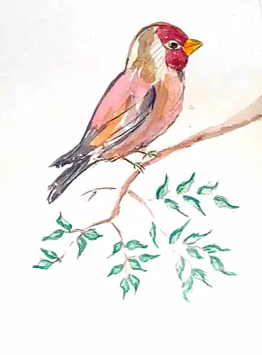 Однажды в Басманном районе я гуляла по скверу и заметилв красивую птичку, сидящую на ветке. Она была очень яркой и смотрела по сторонам. Я решила нарисовать её, потому что в нашем районе много природы, деревьев и птиц. Мне нравится наблюдать за ними — они делают город живым и уютным.