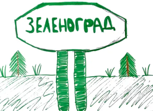 Однажды мы с родителями ездили на Истру. И я заметила красивую таблицу с названием нашего города "Зеленоград". Таблица такая зеленая, собственно, наш город оправдывает название.